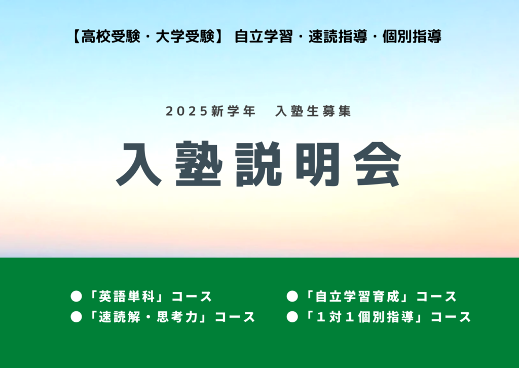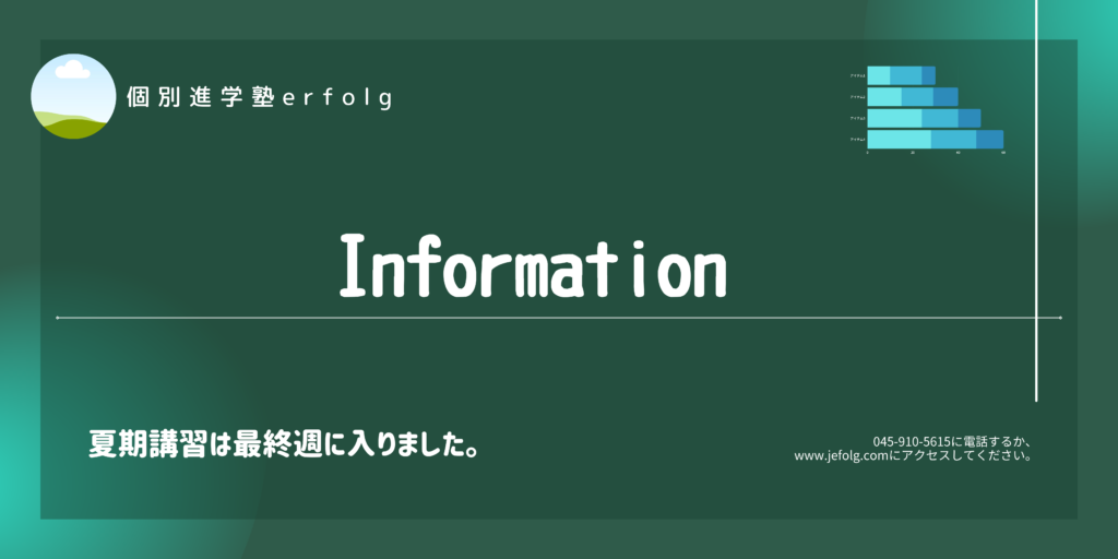 【冬期講習のご案内】短期間で英語力を伸ばすチャンスです! こんにちは。個別進学塾erfolg(エアフォルク)の當山です。 いよいよ一年のまとめと来年の準備をする季節になりました。冬休みは短いように見えますが、実は 学習の遅れを取り戻し、弱点を集中... 英語