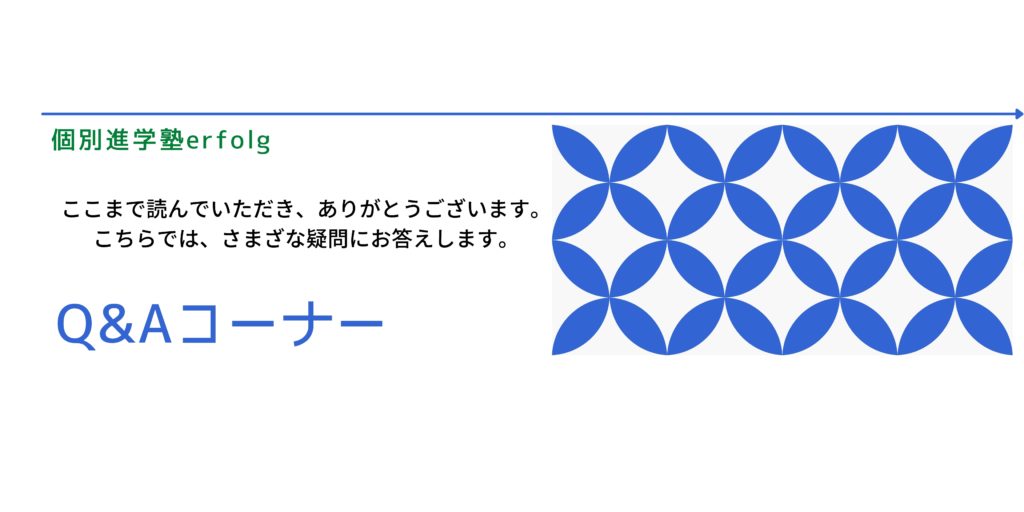 🅰 塾長の當山が8年間住んでいたドイツの言葉で、erfolgと綴り、「成功」を意味します。この塾に通ってくれる生徒たちがみな、受験においても、人生においても成功してほしいという願いを込めてこの塾名に決めました。